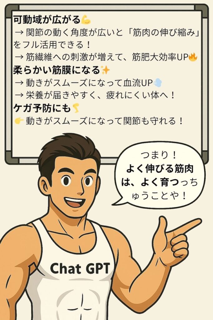 → 関節の動く範囲が広いと、筋肉をしっかり「伸ばして縮める」動作ができる!