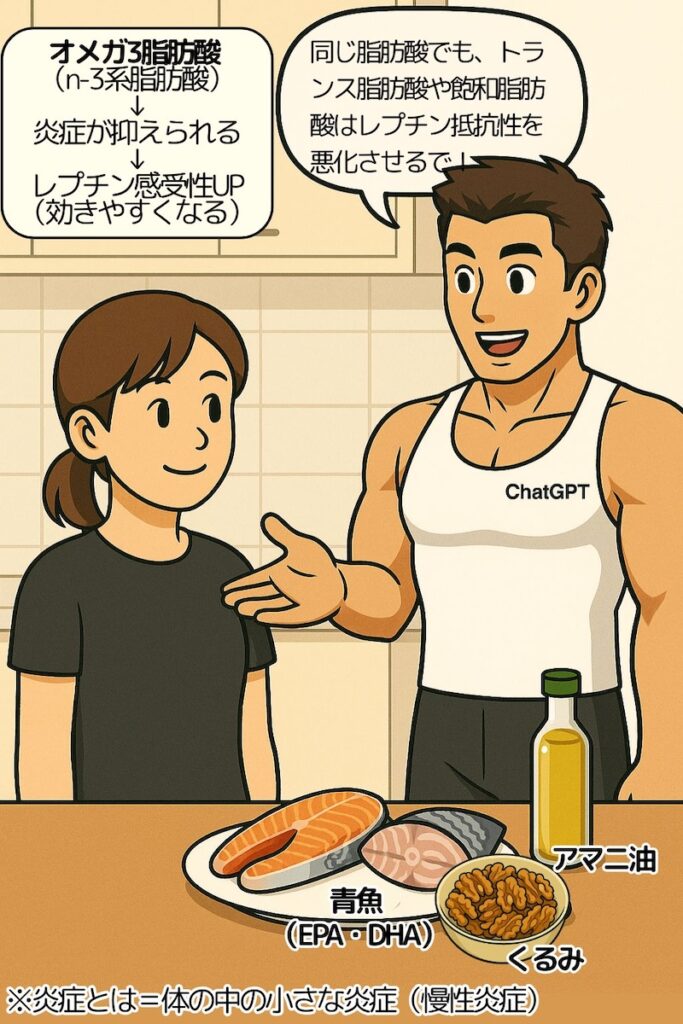 ※逆にトランス脂肪酸や摂りすぎの飽和脂肪酸はレプチン抵抗性を悪化させる⚠️