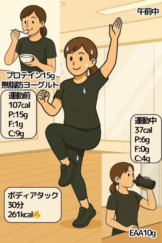 このままじゃジムに行けないので、プロテインとヨーグルトで補給!