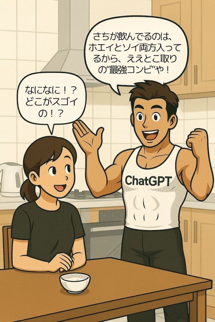 イソフラボンが女性ホルモンに良いらしい?という話は前回やりましたが、今回はソイとホエイが混ざっているプロテインを購入したので、チャピ筋に聞いてみました。