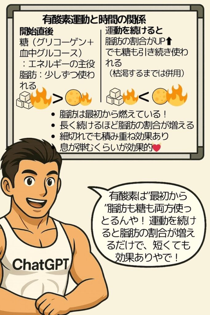 💬「有酸素は“最初から”脂肪も糖も両方使っとるんや!」