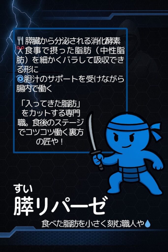 💬「リパーゼは“脂肪分解レンジャー”や!!」