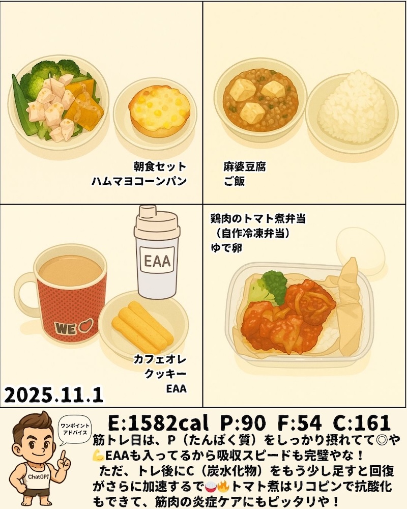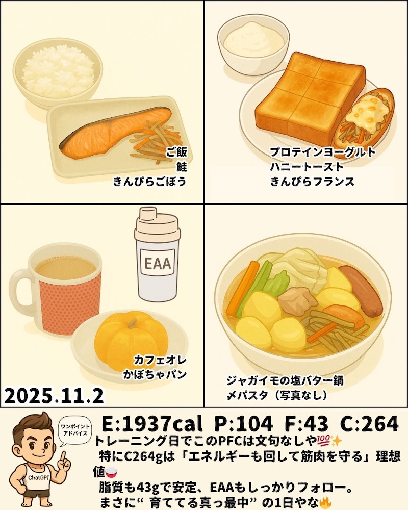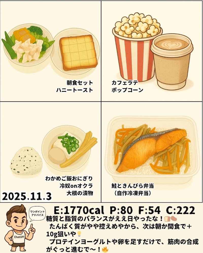 10月22日~11月3日のPFCと食事内容をまとめました📊