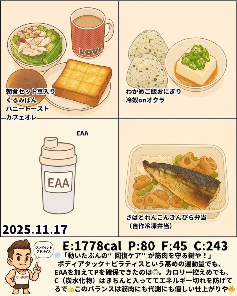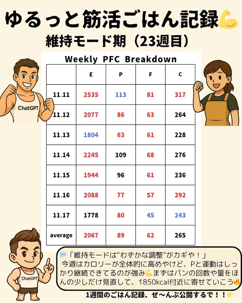 \ゆるっと筋活ごはん🍚 23週目!/リコンプ2ヶ月目💪 維持モード🔥11月11日~17日