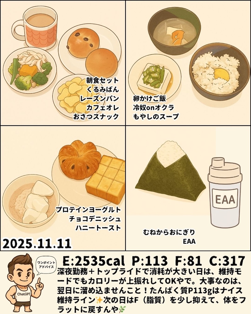 11月11日~17日のPFCと食事内容をまとめました📊