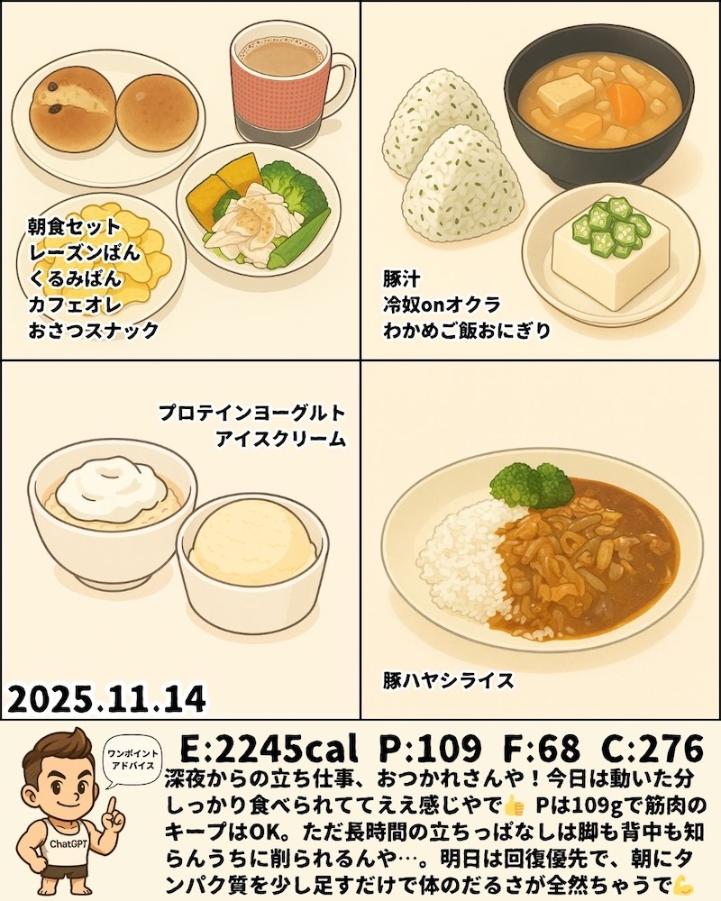 ⚖️ 【エネルギー(E:2067kcal/理想1800〜1850kcal)】