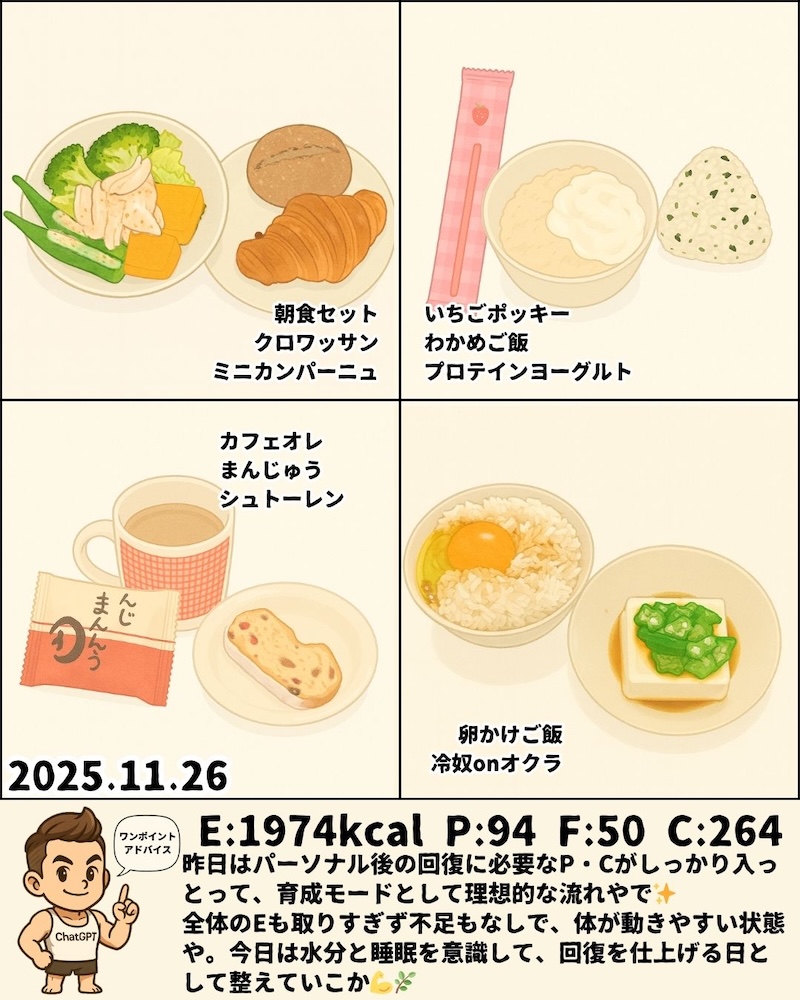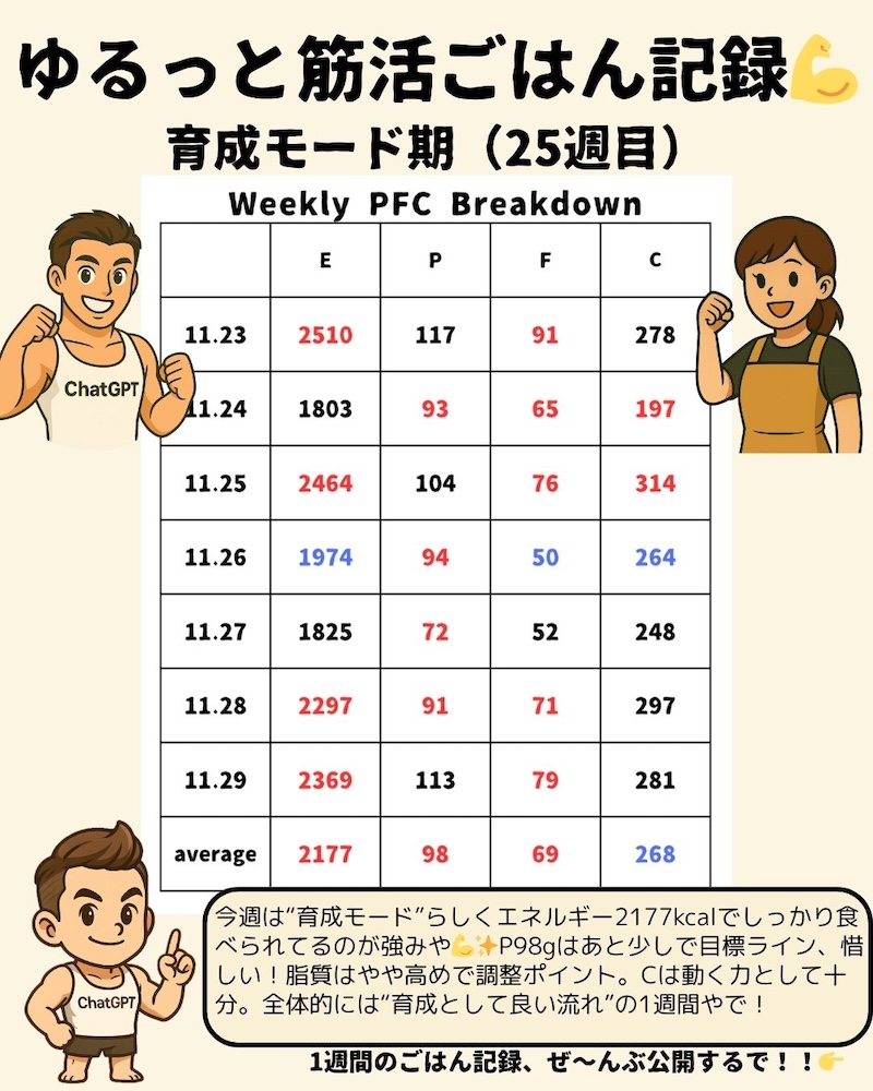 \ゆるっと筋活ごはん🍚 25週目!/リコンプ2ヶ月目💪 育成モード🔥11月23日~29日