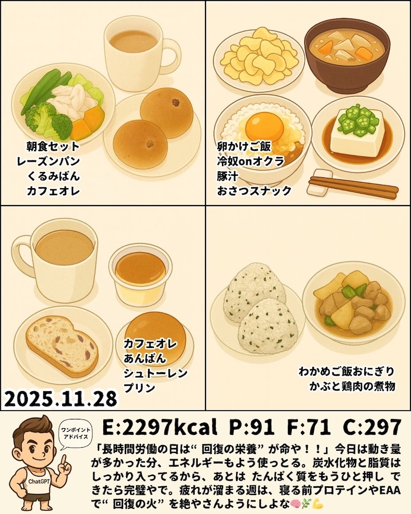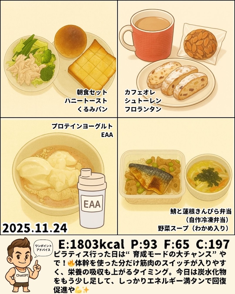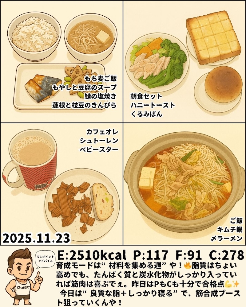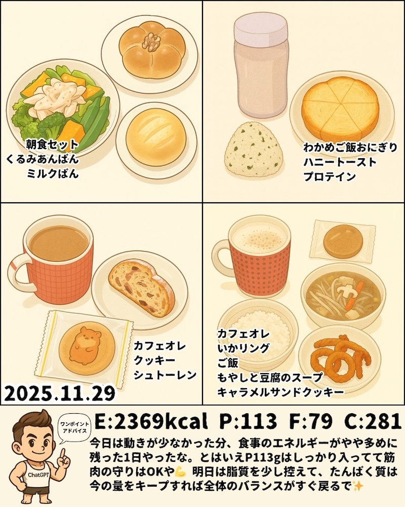 11月23日〜11月29日のPFCと食事内容をまとめました📊