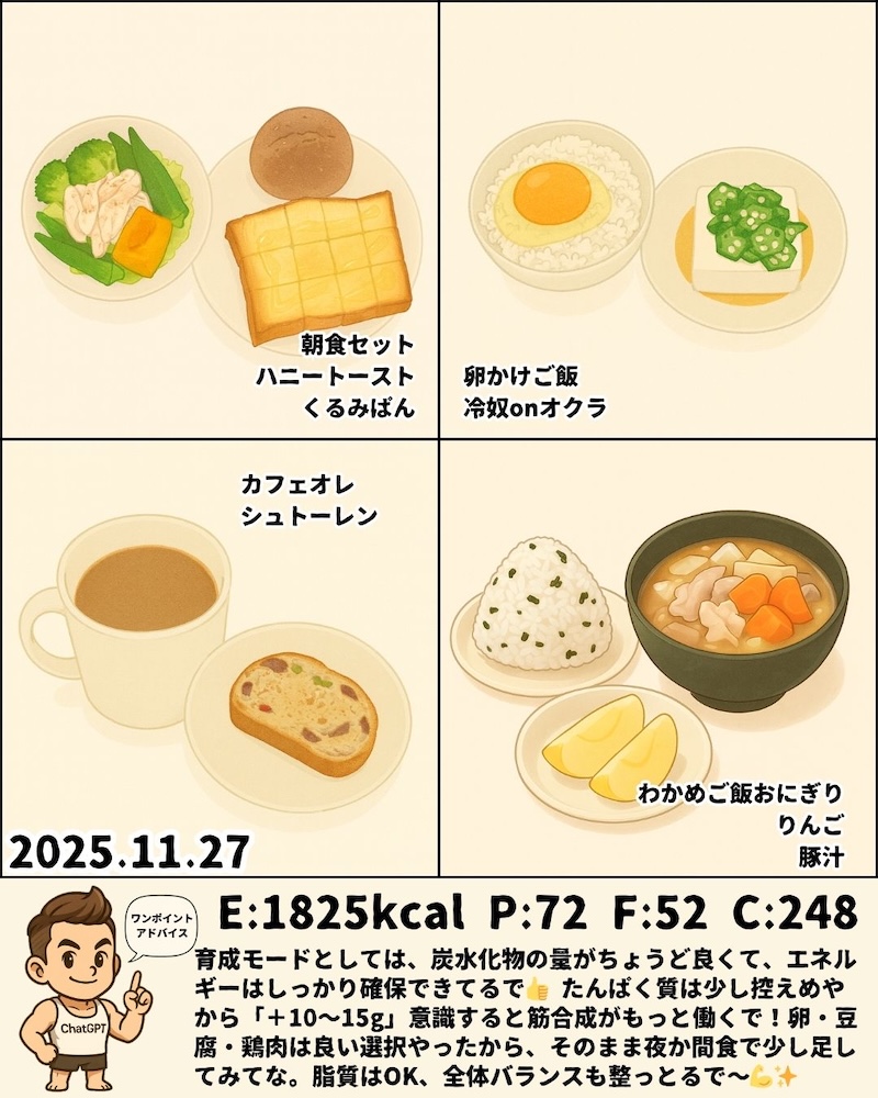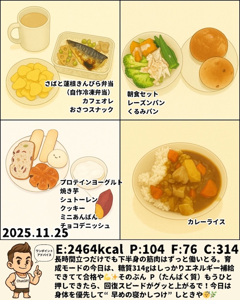 エネルギーと炭水化物はしっかり入ってて“育てる週”らしい流れや💪✨